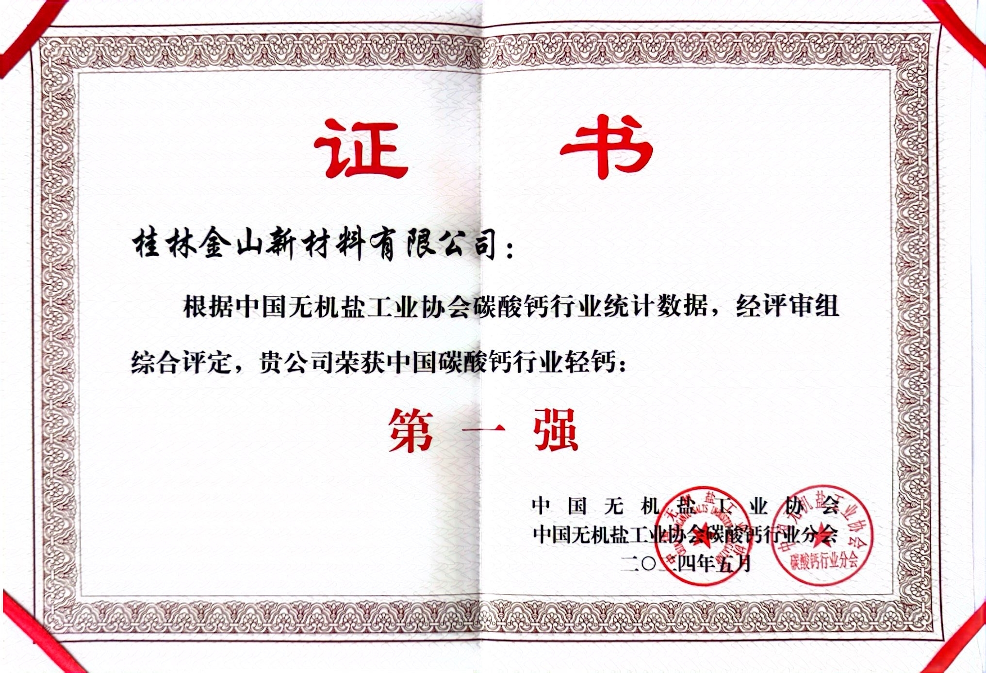 “中國(guó)碳酸鈣行業(yè)輕鈣第一強(qiáng)”